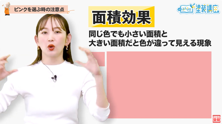 長:注意点は面積効果を理解し、大きな面積に塗ると色が異なって見えることを念頭に置く。カラーシミュレーションと実際の塗板での確認を両方行い、天候や、時間帯など異なる日照条件下を鑑みて、色の見え方をチェックすることです!ピンクは色のバリエーションが幅広いことを理解し、どれぐらいピンクを使用するかイメージを固めておくことで、周囲の環境にも馴染む、理想の色をきっと選ぶことができるでしょう!