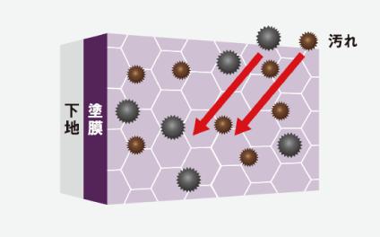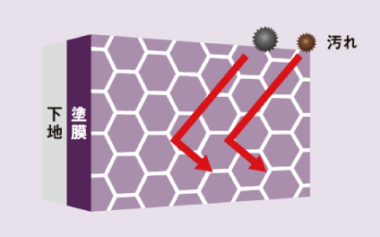 塗膜表面が強靭なため、砂埃が刺さりにくく、排気ガスなどが染み込みにくい。