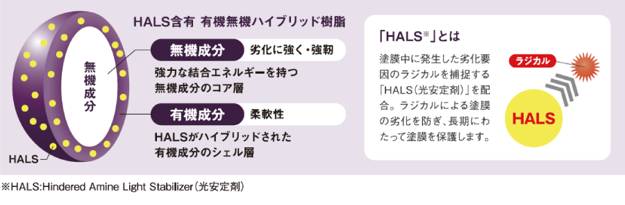 HALS含有 有機無機ハイブリッド樹脂により高い耐候性を実現