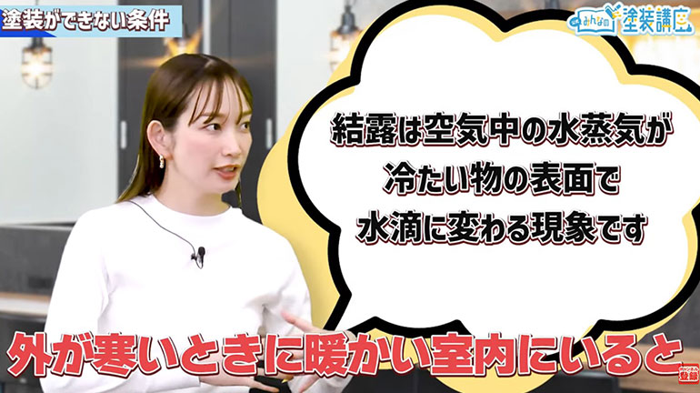 谷口:はい、あれは室内と室外の温度差によって結露が生じるのですが、塗装する外壁や、屋根にも同じように結露が起きることがあります。