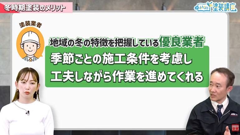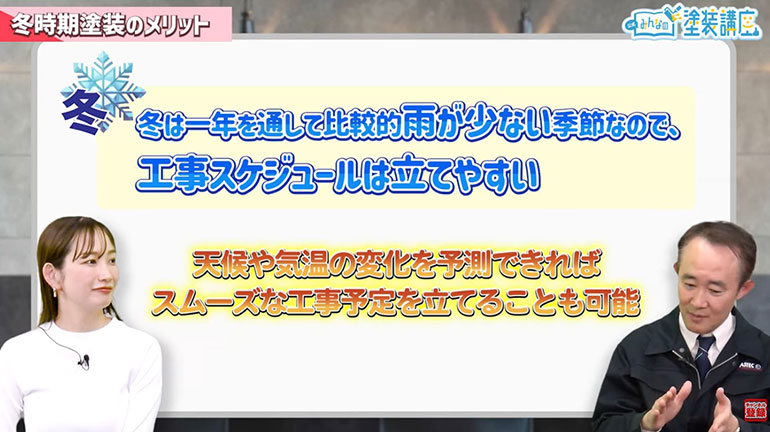 谷口:ここまで、冬の外壁塗装の注意点をご説明しましたが、メリットも存在します。