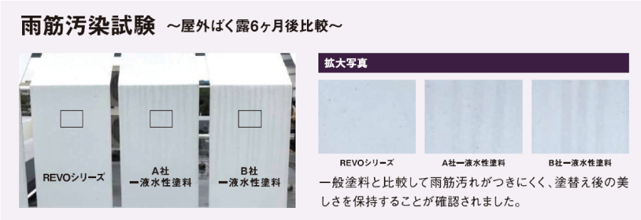 無機REVO1000はそれらの性能を高いレベルで実現するため塗料中に使用する無機成分や顔料を徹底的にこだわり抜きました。